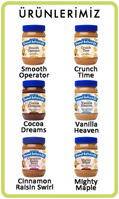 Sade Fıstık Ezmesi Kırıntılı Fıstık Ezmesi Kakaolu Fıstık Ezmesi Vanilyalı Fıstık Ezmesi Tarçınlı ve Kuru Üzümlü Fıstık Ezmesi Akcaagac Şurup Fıstık Ezmesi